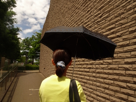 日傘が使えない場面もありますし、蒸し暑くて帽子をかぶりたくない日は日傘を低く持って歩きます。